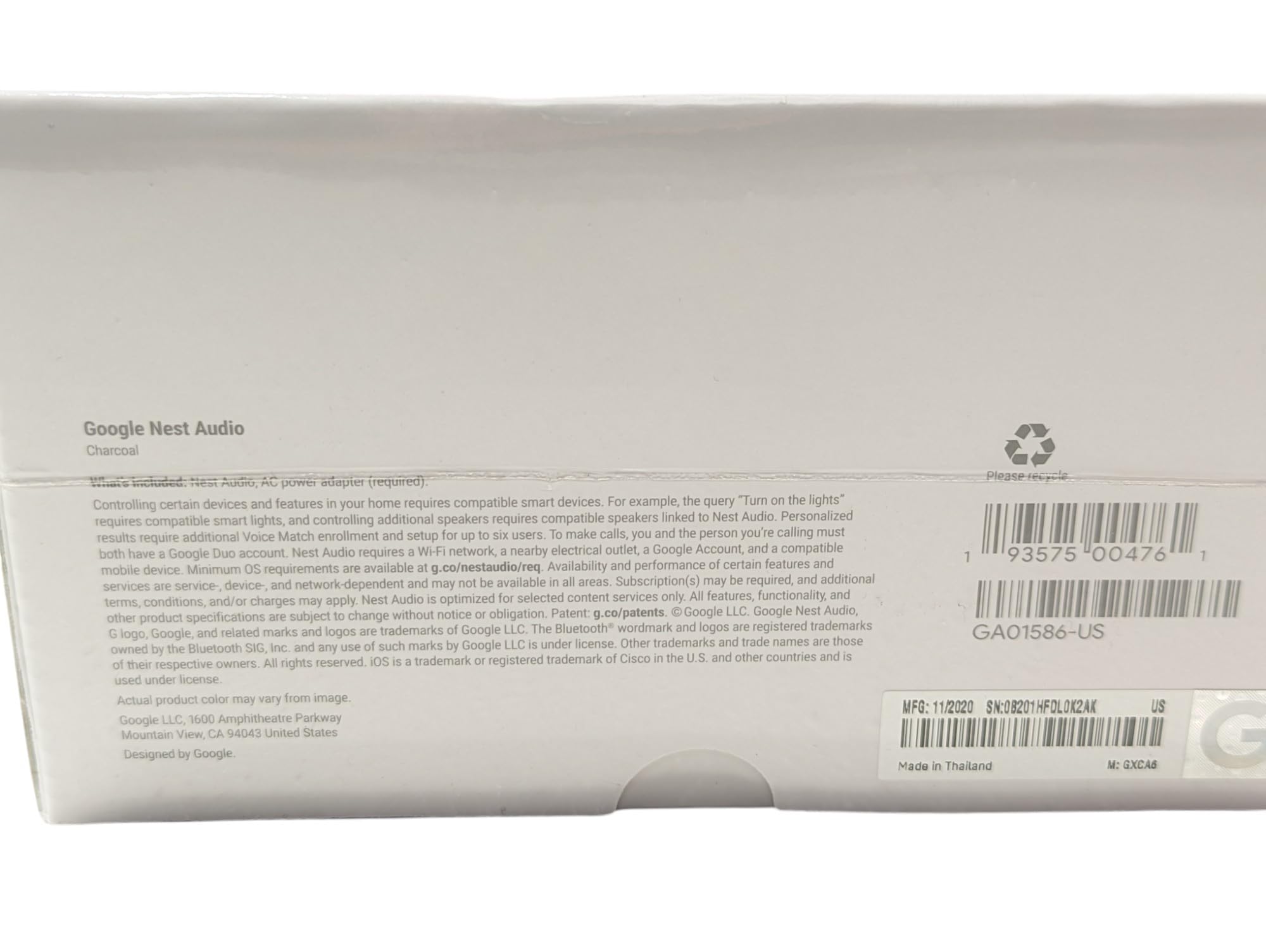 Details: The Google Audio Bluetooth Speaker delivers rich, immersive sound with its powerful woofer and tweeter, designed to produce clear highs and deep bass. Integrated with Google Assistant, it allows you to control smart home devices, play music, check the weather, and more—all hands-free. Built-in Wi-Fi and Bluetooth connectivity provide seamless streaming from your favorite services. Pair two speakers for a stereo setup or enjoy room-to-room audio transfer for a whole-home sound experience. Plus, its eco-friendly design ensures it looks good while doing good for the environment.
