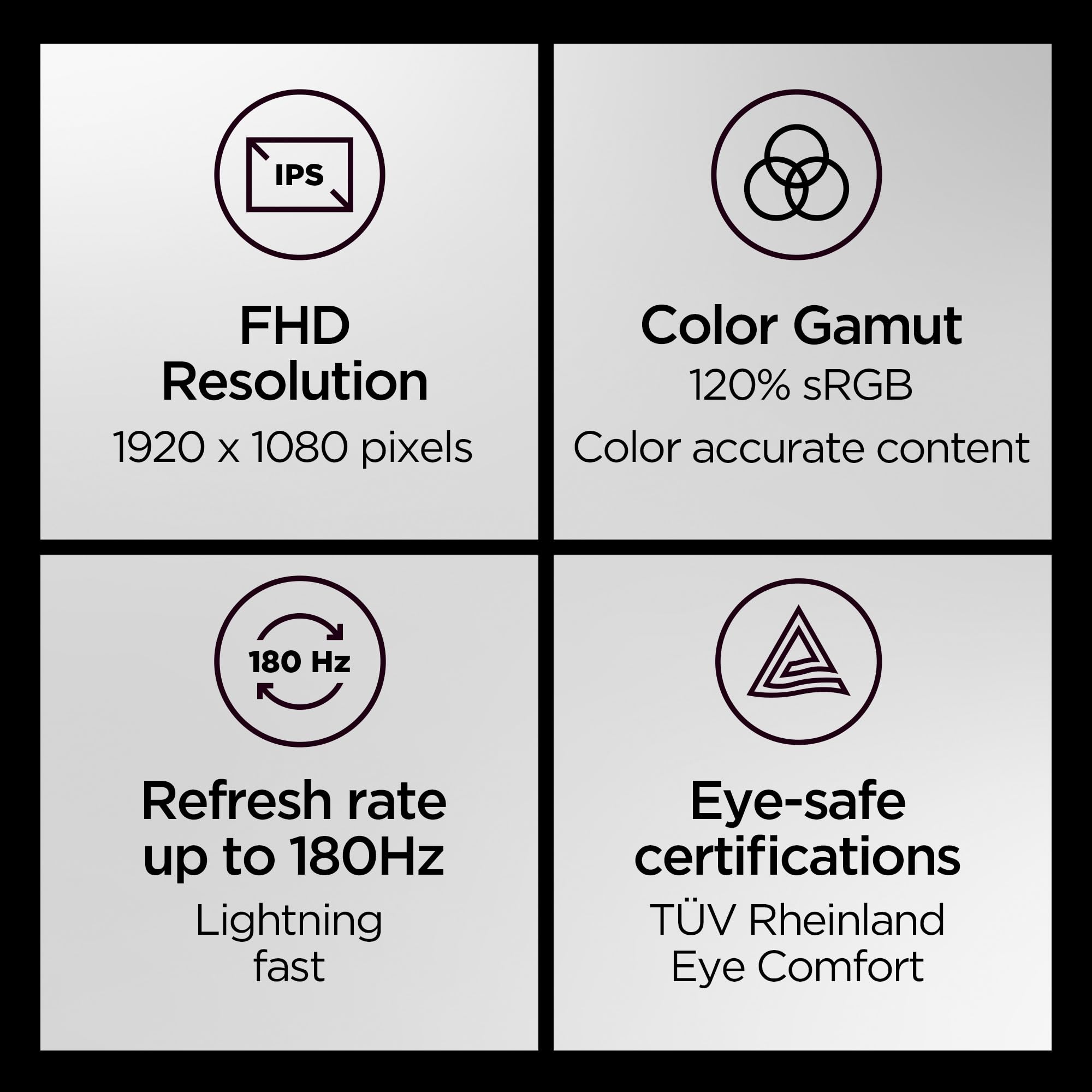 - BLAZING SPEED – Outpace your rivals with the 180Hz refresh rate and lightning-fast 0.5ms response time.